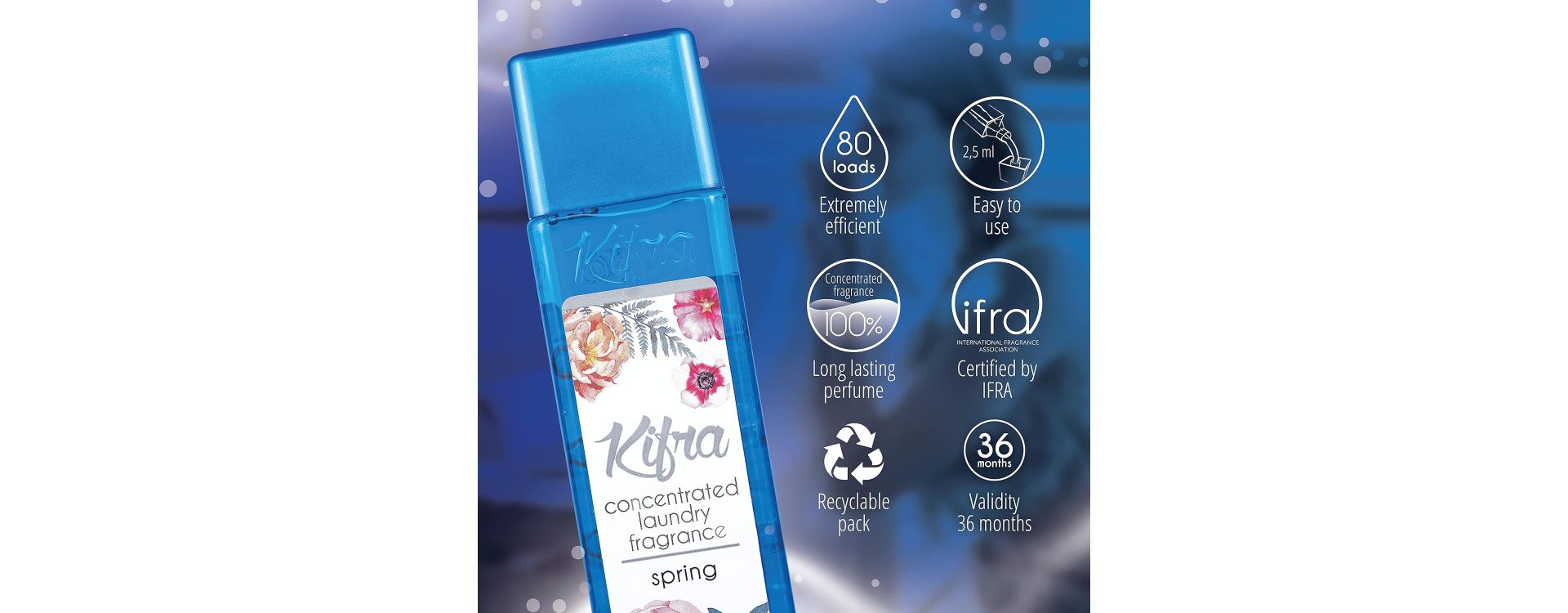 Discover Kifra fabric perfume concentrated laundry fragrance with ELR technology for long-lasting freshness. Explore...